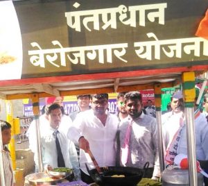 पिंपरी चिंचवड राष्ट्रवादी युवक कॉंग्रेसच्या वतीने ‘पंतप्रधान बेरोजगार योजना अंतर्गत प्रधानमंत्री वडापाव सेंटर’ सुरु करुन केंद्र सरकारच्या विरोधात आंदोलन करण्यात आले. गुरुवार (दि. ७) रोजी प्राधिकरण निगडी येथे लोकमान्य टिळक पुतळा चौकात हे अनोखे आंदोलन करण्यात आले.