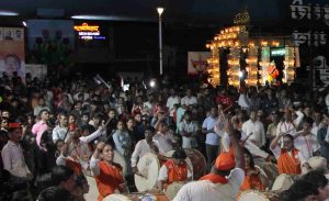 पिंपरी (दि. 28 सप्टेंबर 2023) :- पारंपरिक ढोल ताशा पथक, शिवकालीन युद्धकलांची प्रात्यक्षिके, आकर्षक रथ सजावट अशा विविध स्वरूपात उत्साहाच्या वातावरणात भोसरी येथे जल्लोषात निघालेल्या गणेश विसर्जन मिरवणुकांमध्ये सहभागी झालेल्या गणेश मंडळांचे महापालिकेच्या वतीने स्वागत करण्यात आले.